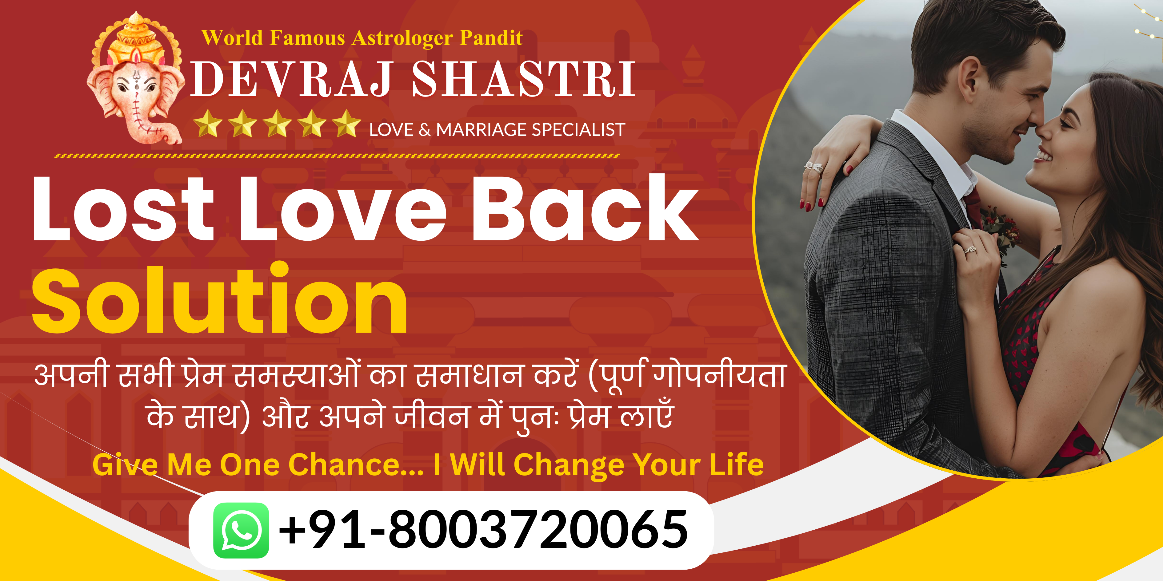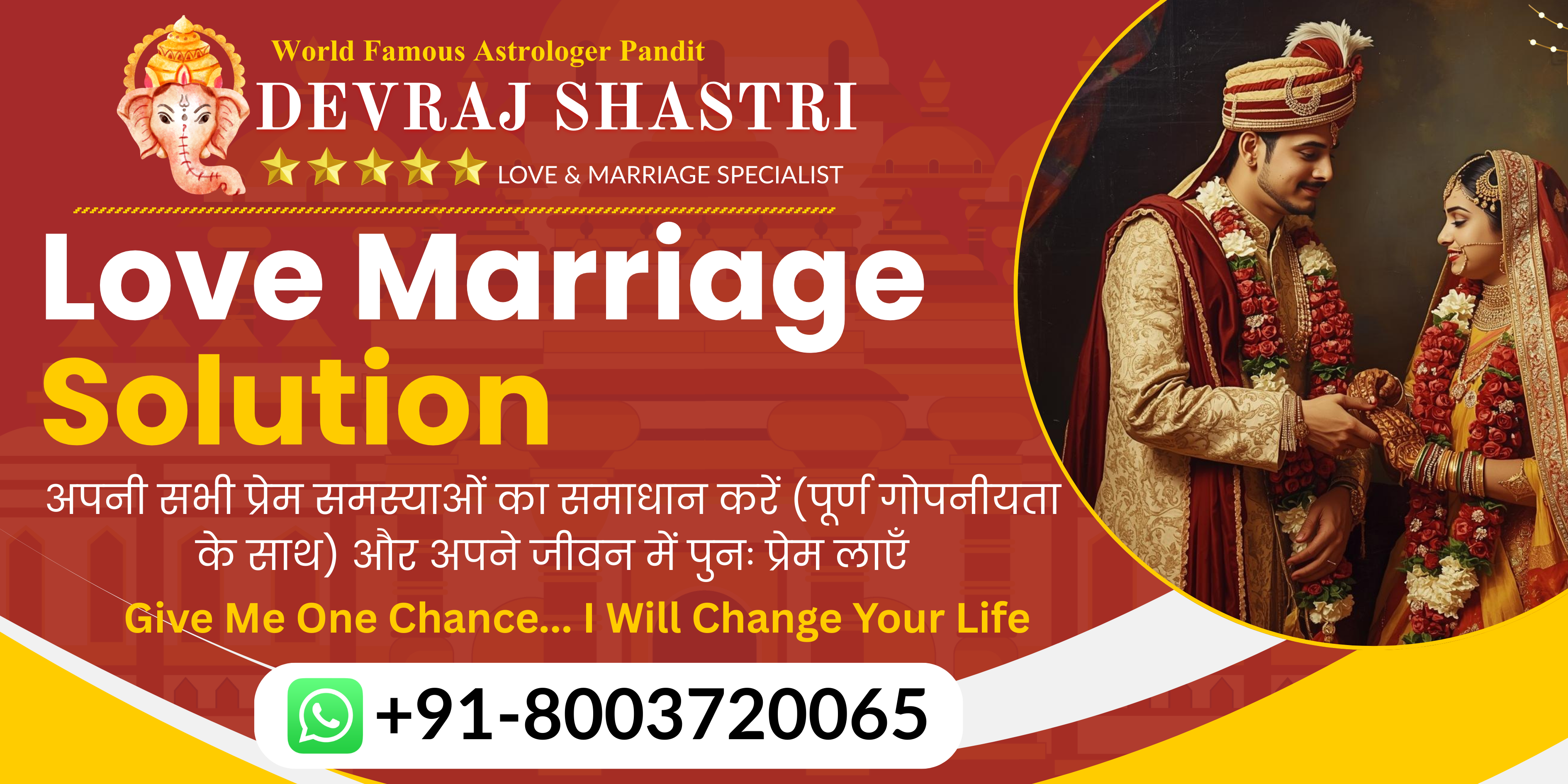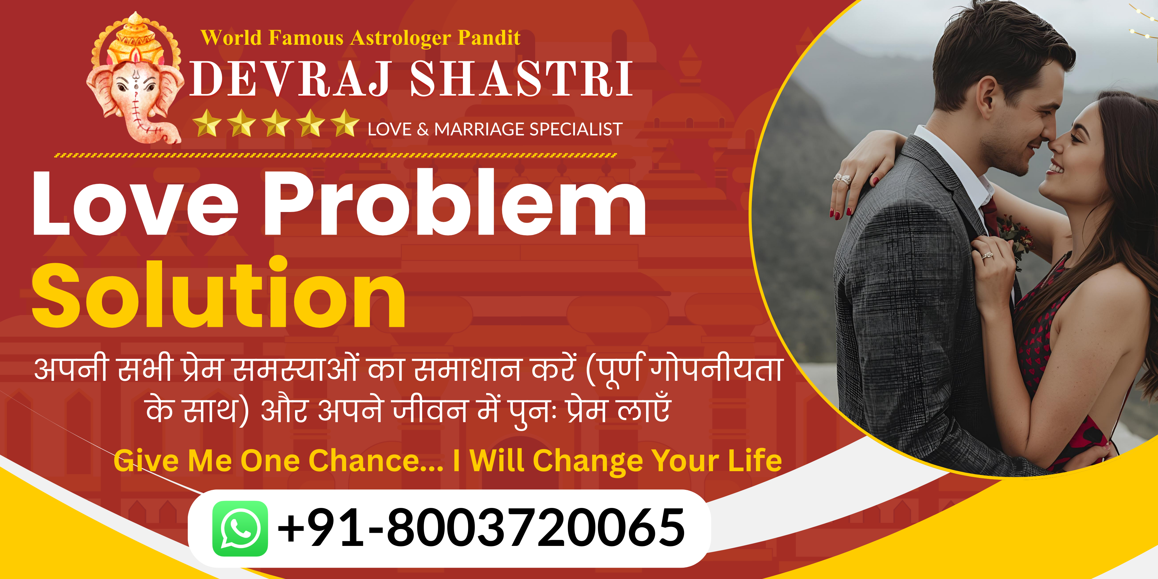 Astrologer Pandit Devraj Shastri has helped me in saving my love affair from breaking up. He has solved my problems, and I am really impressed that his remedies work like miracle.